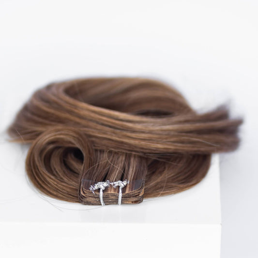 Tape-In 18" 50g Professional Hair Extensions - Chocolate Brown Highlight #4/27