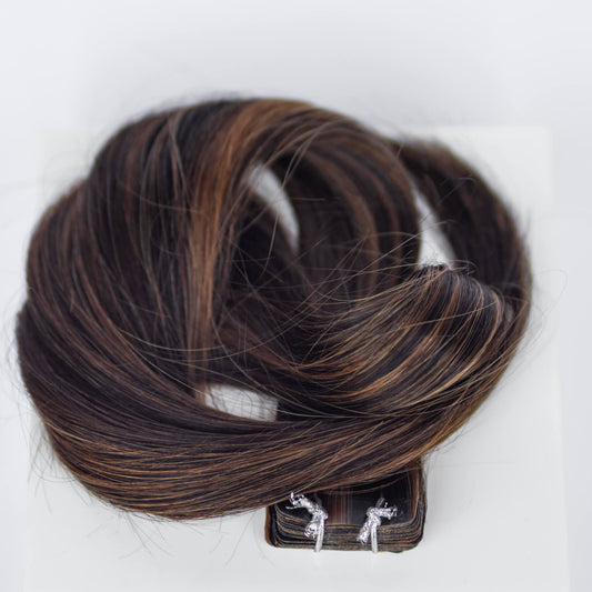 Tape-In 18" 50g Professional Hair Extensions - Chocolate Brown Highlight #4/27