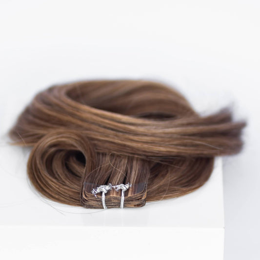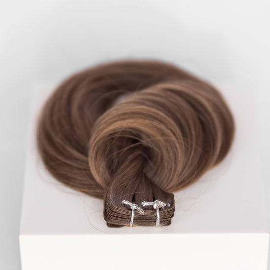 Tape-In 22" 50g Single Donor Virgin - #8 Whiskey Brown (aka Ash Brown)
