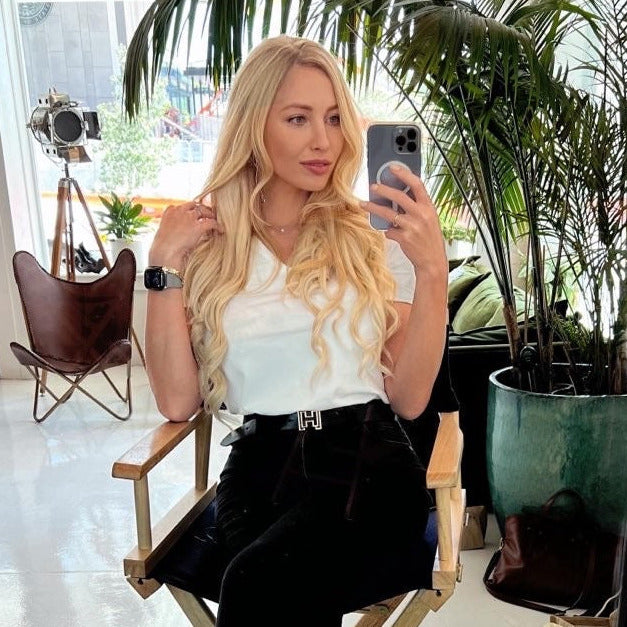 A study in pale refinement and quiet radiance. The Beauvoir Genius Weft is crafted from the top ten percent of the world’s healthiest hair—ethically sourced and rigorously tested for pH, porosity, moisture content, tensile strength, and strand diameter. Ultra-thin and flexible, it blends invisibly for seamless installs and effortless movement.
