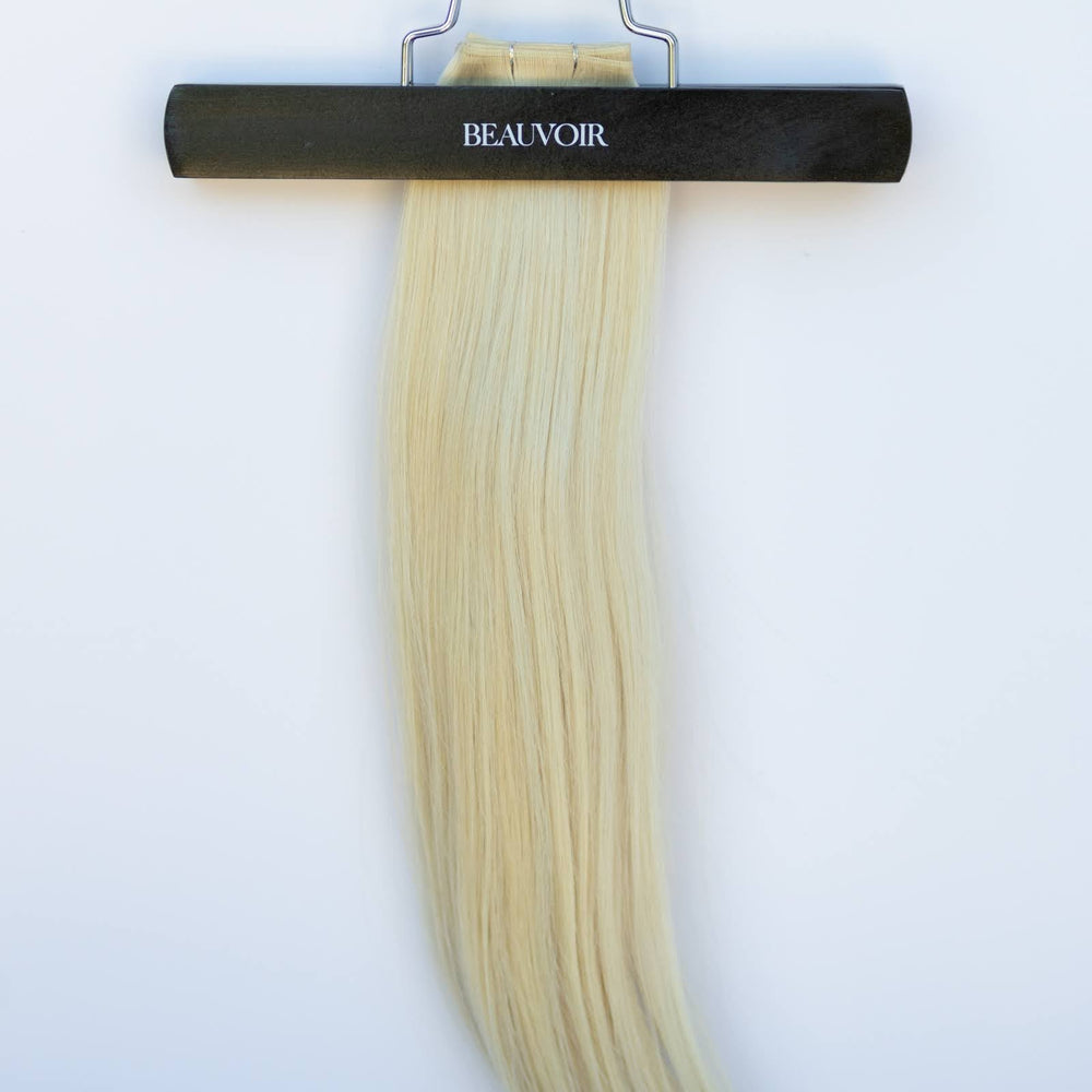 A study in pale luminosity and disciplined coolness. Crafted entirely from one donor for unmatched purity, softness, and tonal unity, the Beauvoir Genius Weft delivers continuous, uninterrupted refinement from root to end. Ultra-thin and flexible, it disappears effortlessly into the hair for a clean, seamless install.