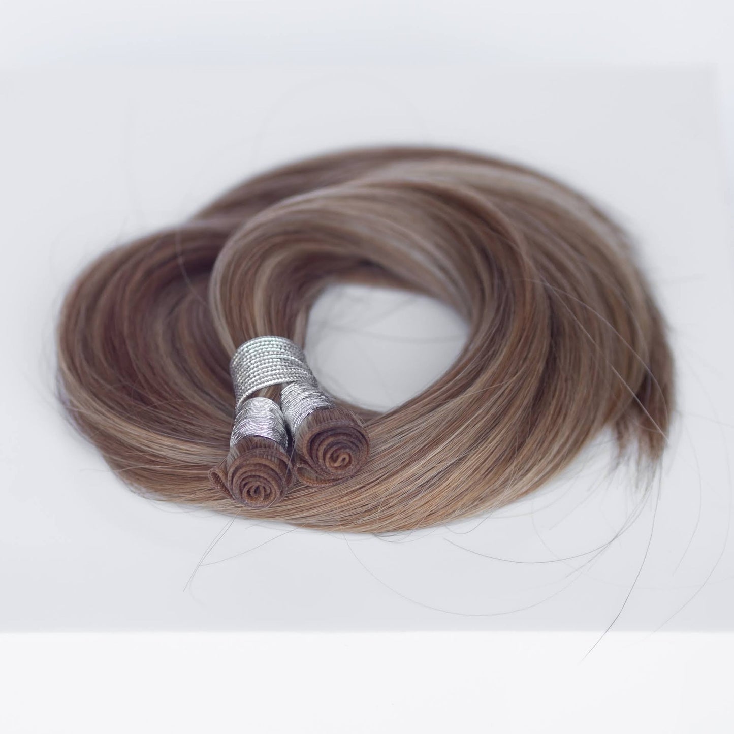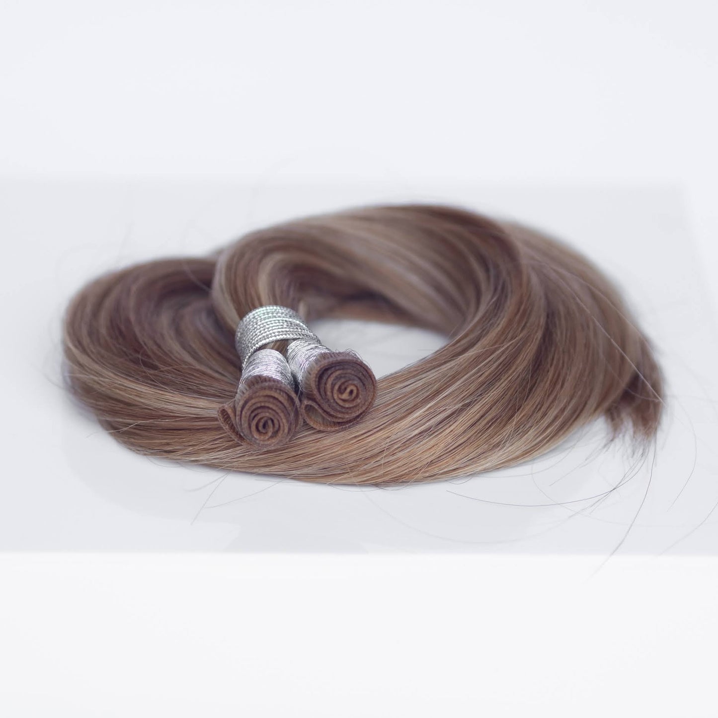 Genius (Micro) Weft 20" 80g Single Donor Virgin - #6/18 Sea Salt & Caramel (aka Highlight Hot Toffee Blonde)