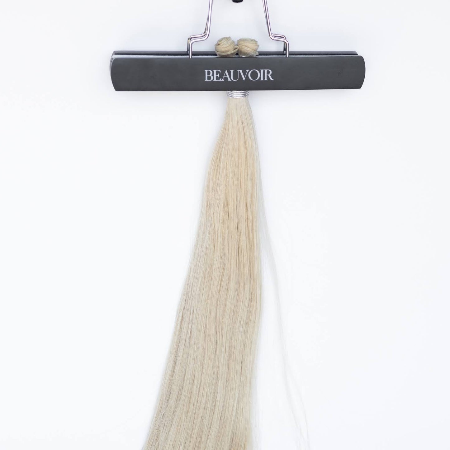 The 22-inch Beauvoir Genius Weft contains approximately 88 grams of hair per pack. Each pack includes 2 × 20” wefts (40” total weft per pack), delivering long, silky fullness with refined fluidity.
