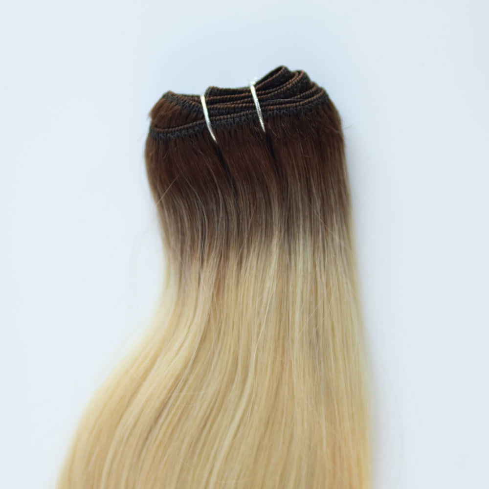 Machine-Tied Weft 24" 170g Single Donor Virgin - #T3/60 Cocoa Rooted Blonde (aka Rooted Walnut Brown/Ash Blonde)