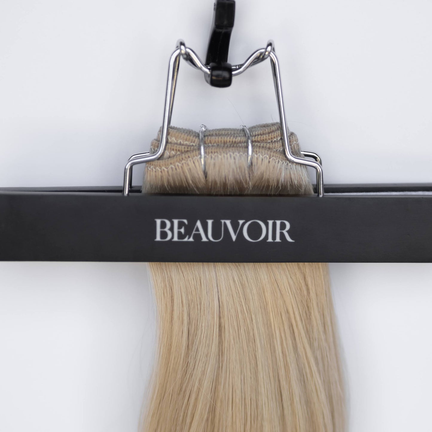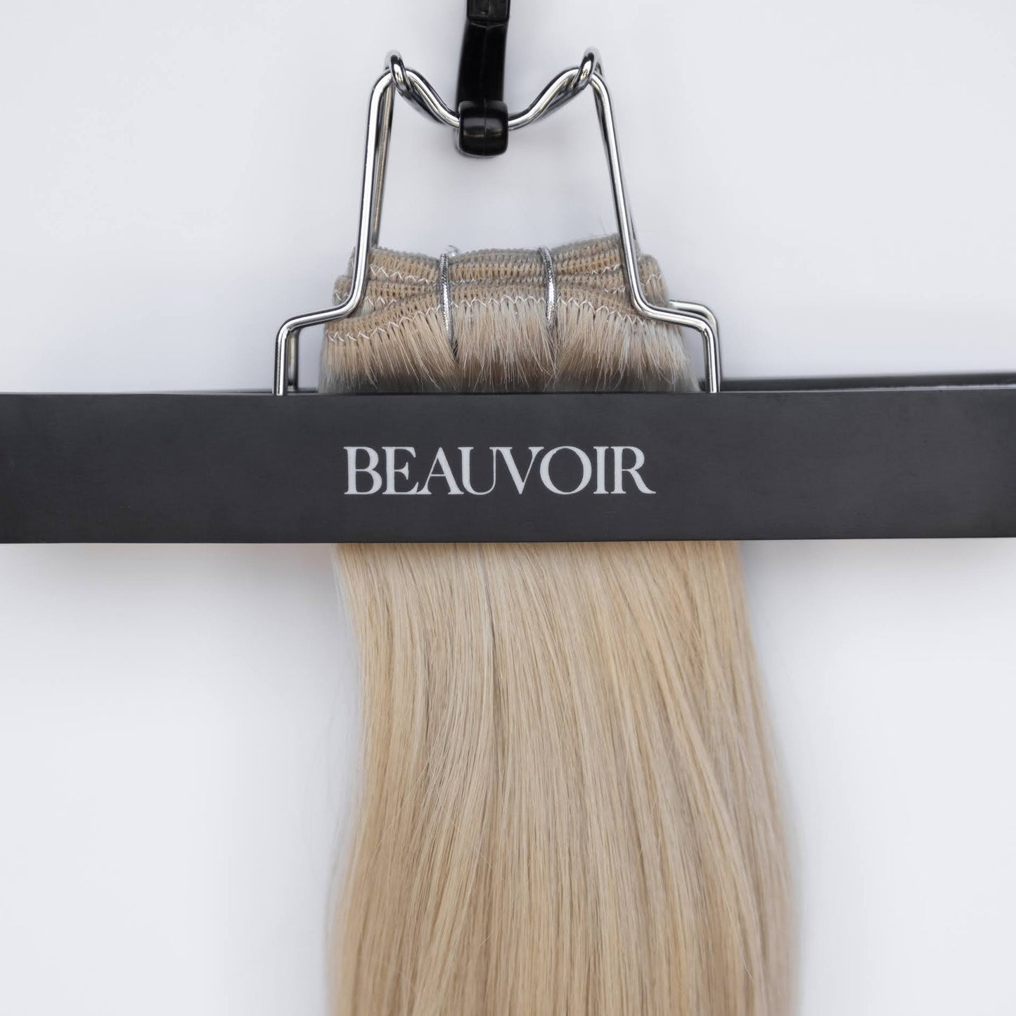A study in refinement. The Beauvoir Pro Blend weft is crafted from the top ten percent of the healthiest hair in the world — supple, radiant, and pure.