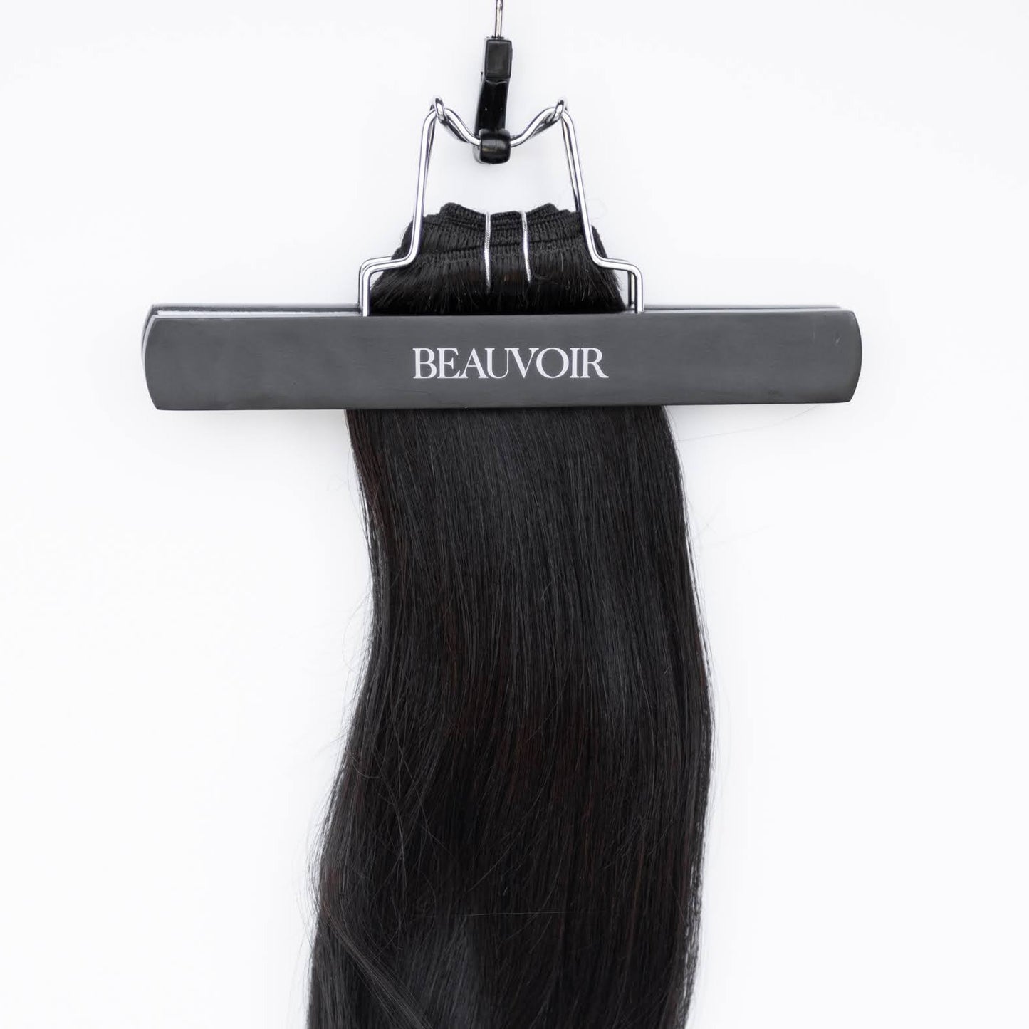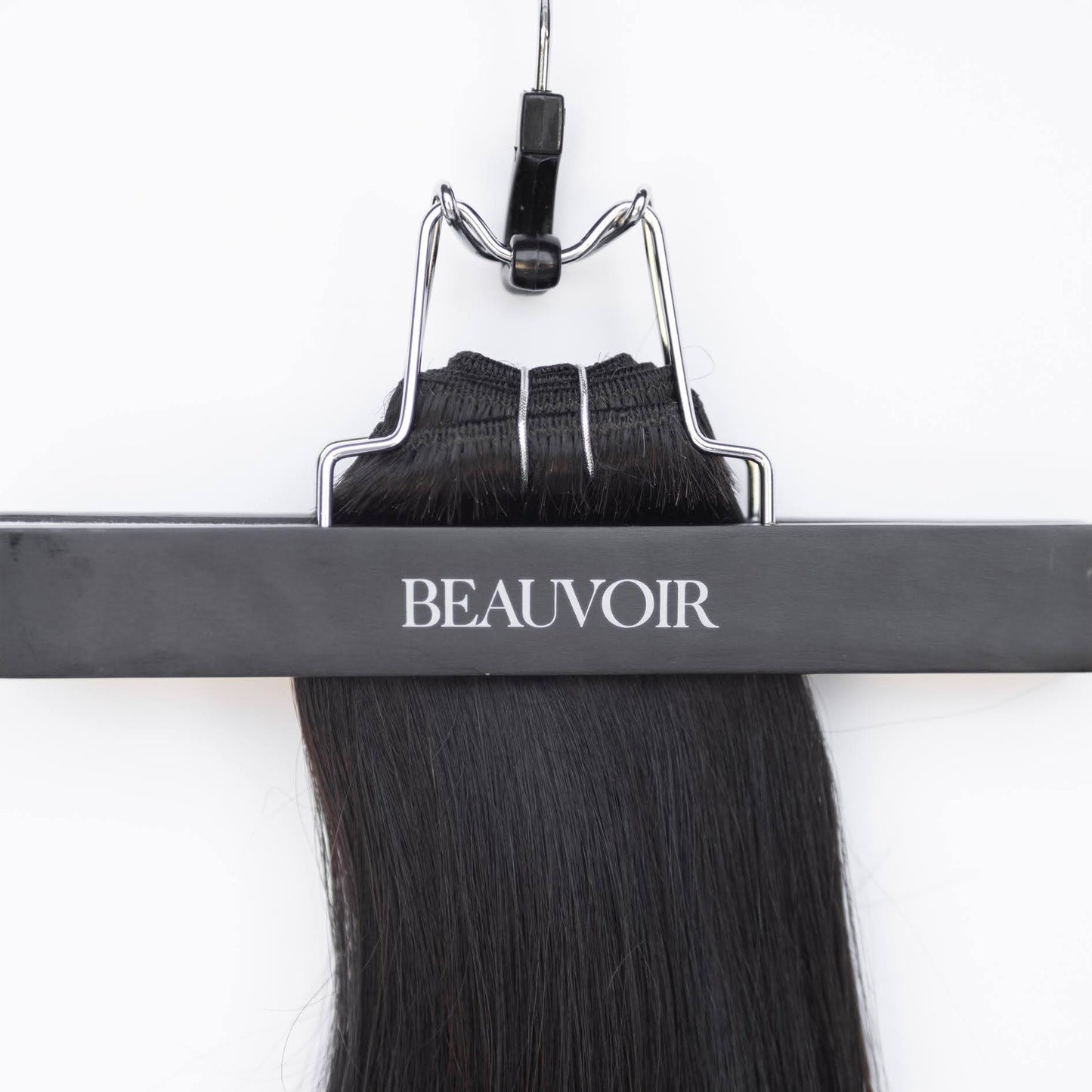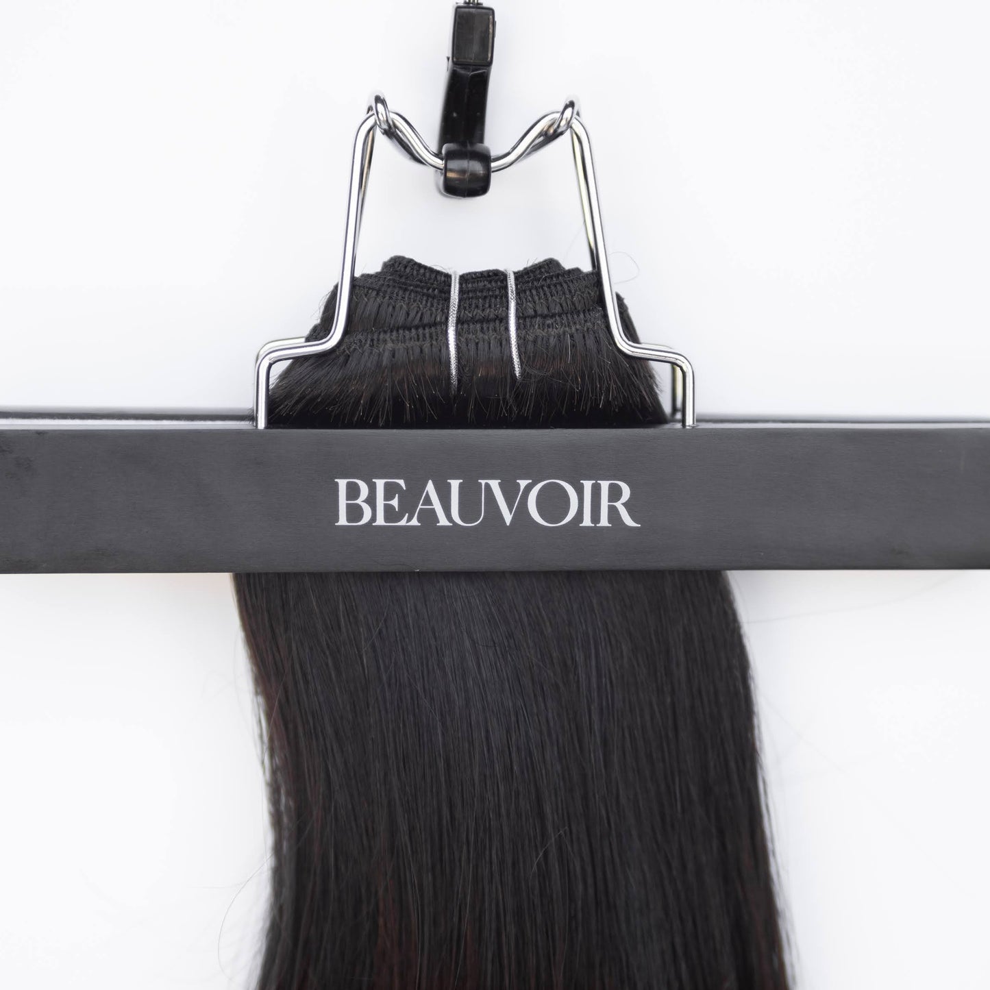 The 24-inch Beauvoir weft measures 55.5 inches in width and contains approximately 170 grams of hair, sleek and weightless, designed to move with natural drape.