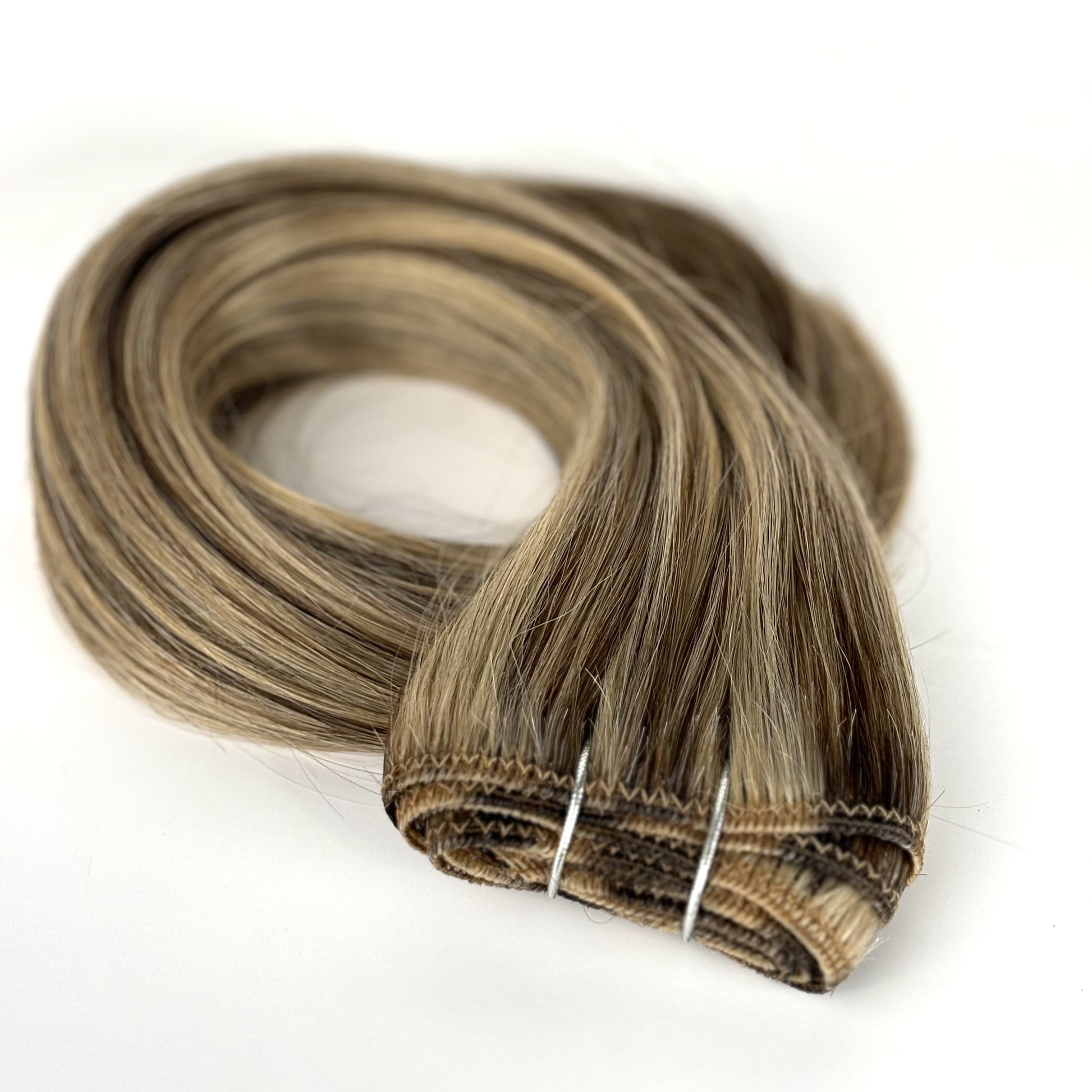 Machine-Tied Weft 28" 180g Single Donor Virgin - #4/27 Chocolate Brulé (aka Highlight Chocolate Brown)