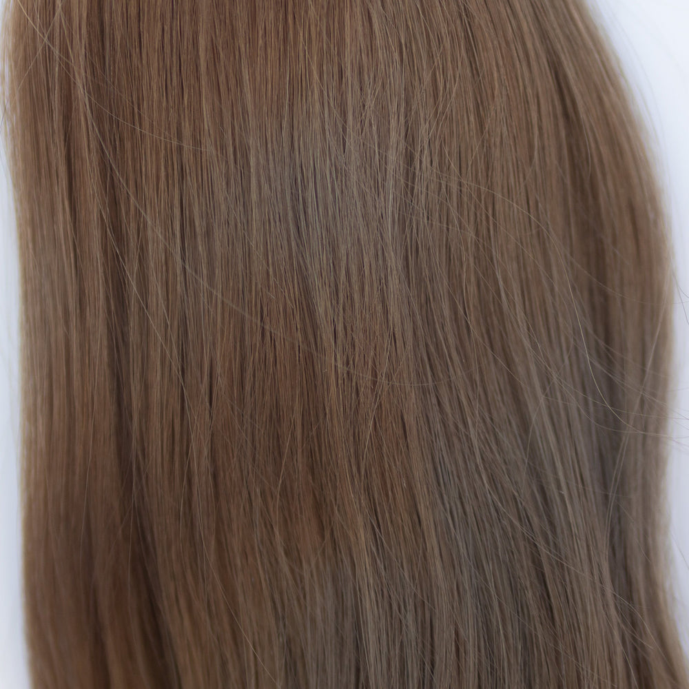 Color #8 Whiskey Brown is a warm, golden brunette reminiscent of aged whiskey — smooth, radiant, and enduringly elegant.