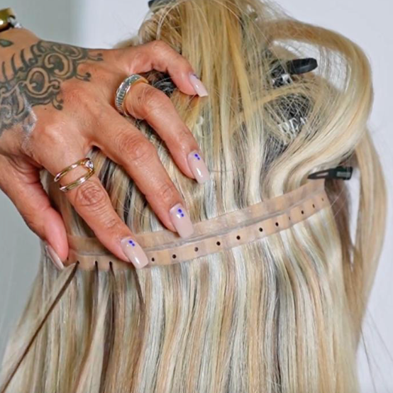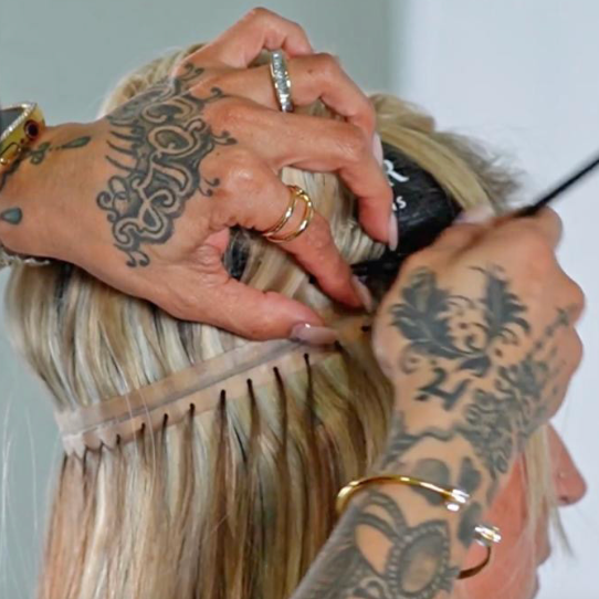 @Beauvoir Hair Extensions has a couple different types of wefts so they have micro and hand tied as well as tape in I-tips the whole shebang and they are phenomenal!!