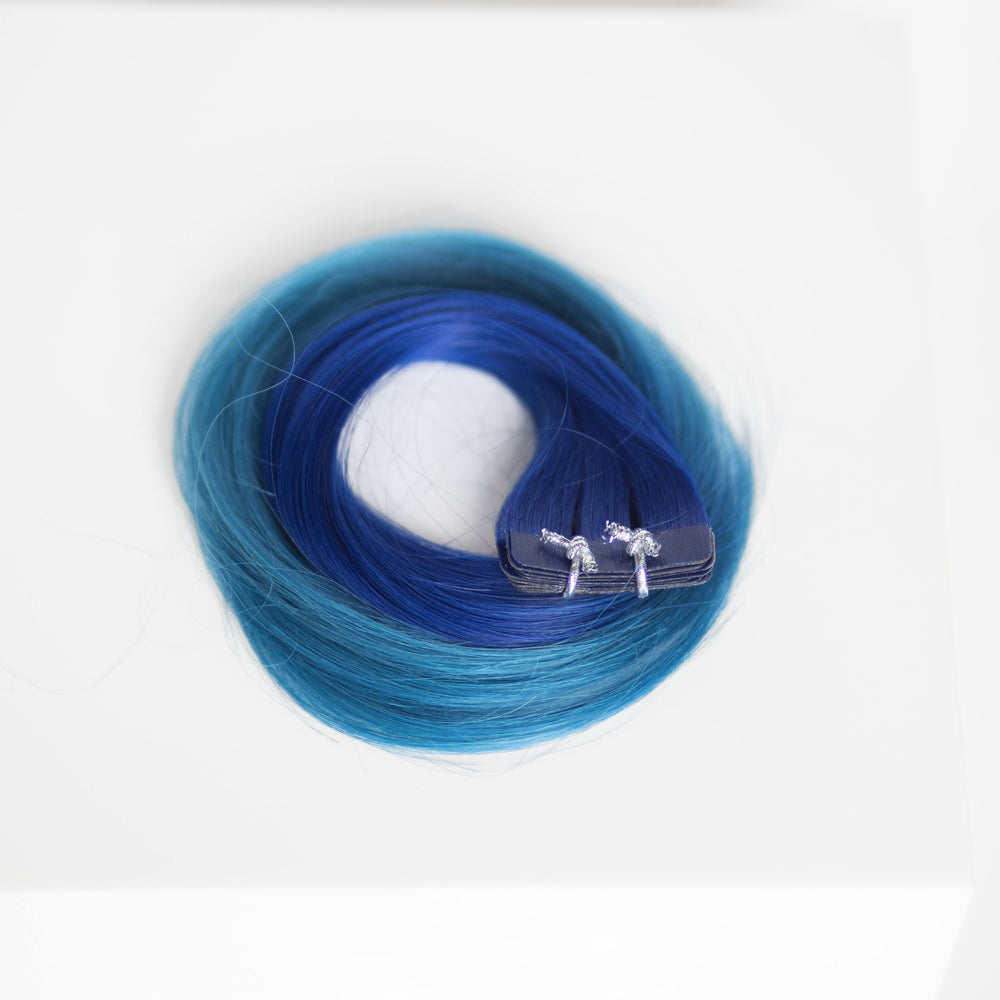 Tape-in 18” 25 grams (10 Pack) Professional Hair Extensions VIVIDS #54/26 Ombré Royal Blue (dark blue on top to light blue on bottom) By Garyn Santos